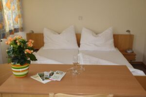Zusätzlich verfügt unser Haus über 6 Doppelzimmer und 5 Dreibettzimmer, die sowohl Gästen von Veranstaltungen als auch Reisenden zur Verfügung stehen, sowie ein Restaurant, in dem wir an Wochentagen abwechslungsreiche Mittagsmenüs anbieten.