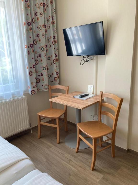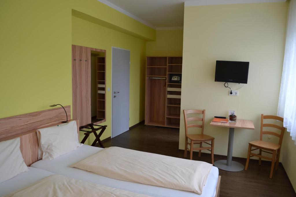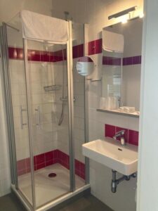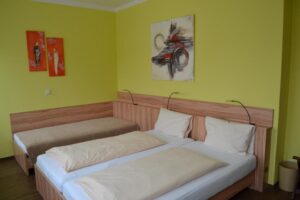 Wir verfügen über 6 Doppelzimmer sowie 5 Dreibettzimmer, die auch als Einzelzimmer buchbar sind. Alle Zimmer sind ausgestattet mit Schreibtisch, Kleiderschrank, Flachbild-TV, Bettwäsche, Handtüchern und einem eigenen Badezimmer mit WC und Dusche.