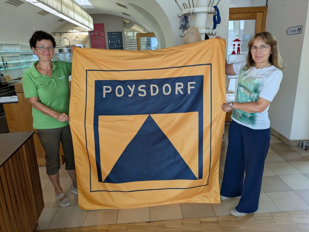 Ein herzliches Dankeschön an Hilde Kubanik! Die talentierte Schneiderin aus Leidenschaft hat unsere bisher namenlose Kolping-Fahne mit dem stolzen Schriftzug „Poysdorf“ veredelt.