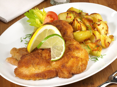 - Hühnerbrust auf feiner Gemüsesauce, Reis, Salat